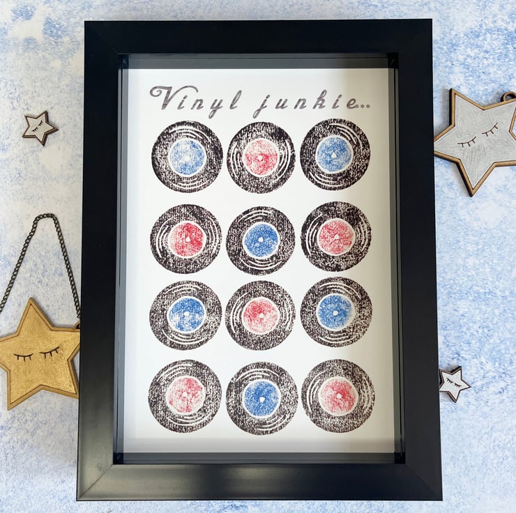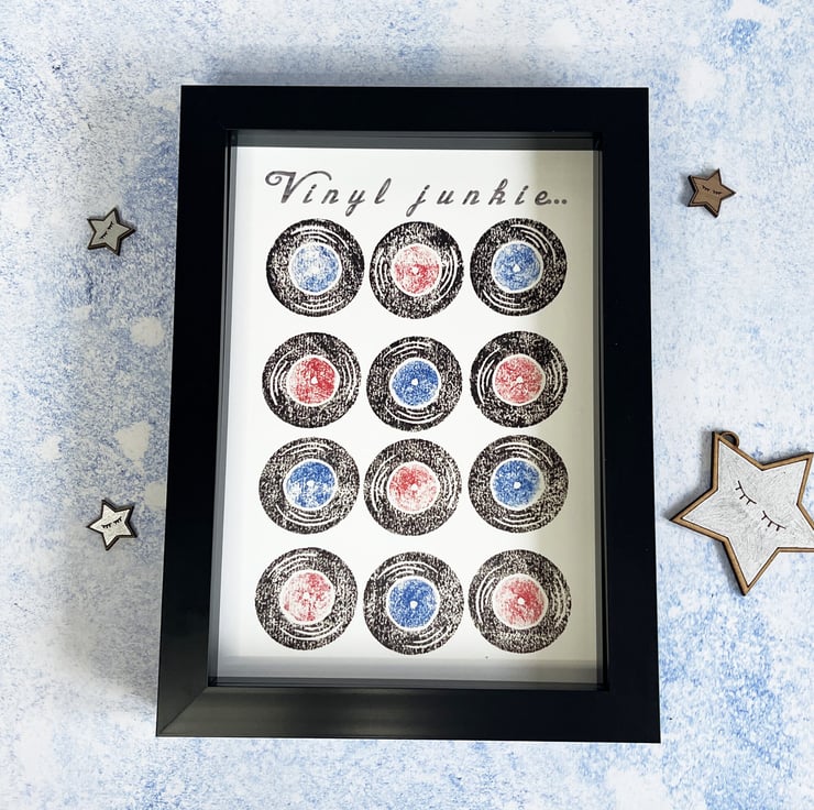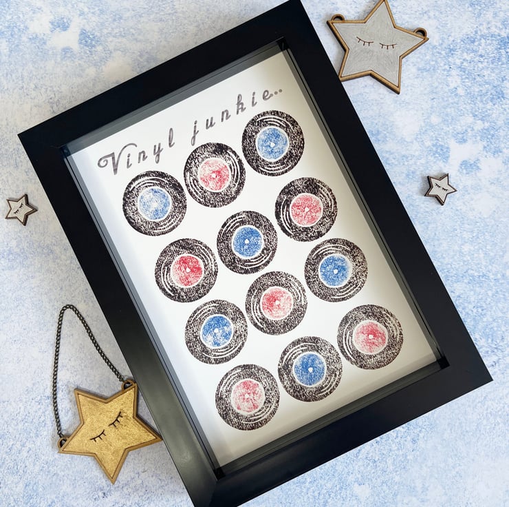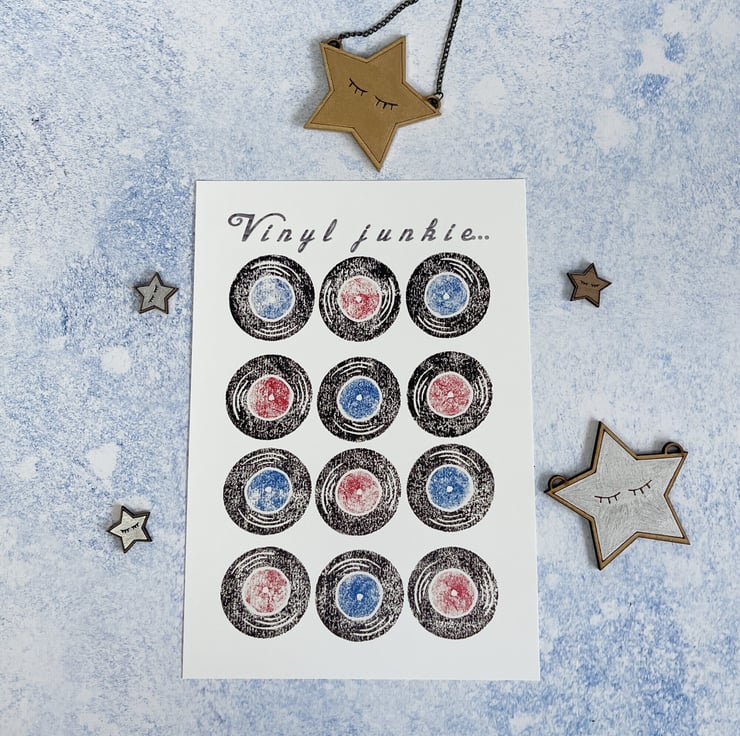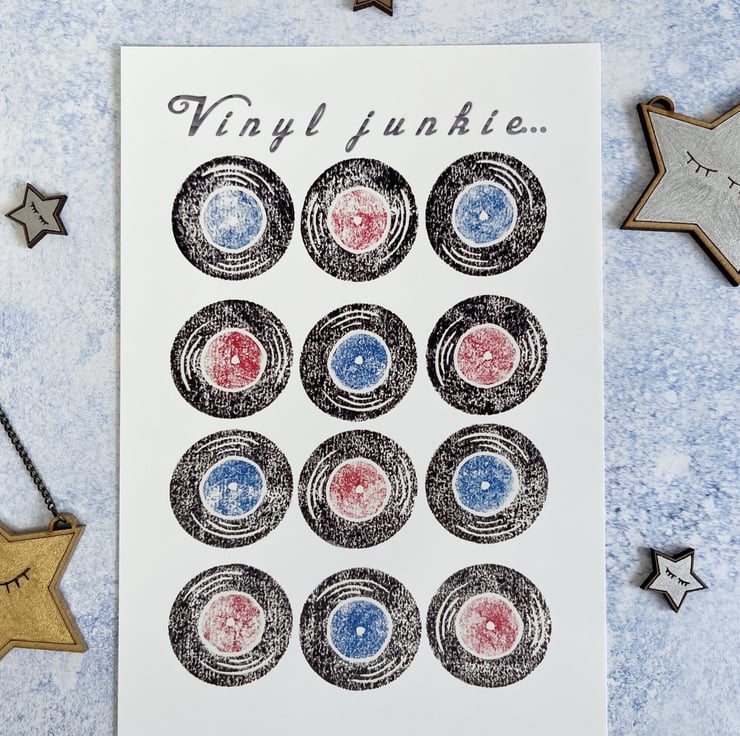 Do you know a record collector or vinyl junkie? This A5 print of a linocut print would make an ideal DJ gift or 1st anniversary present. It's printed on matt archival paper and unframed.