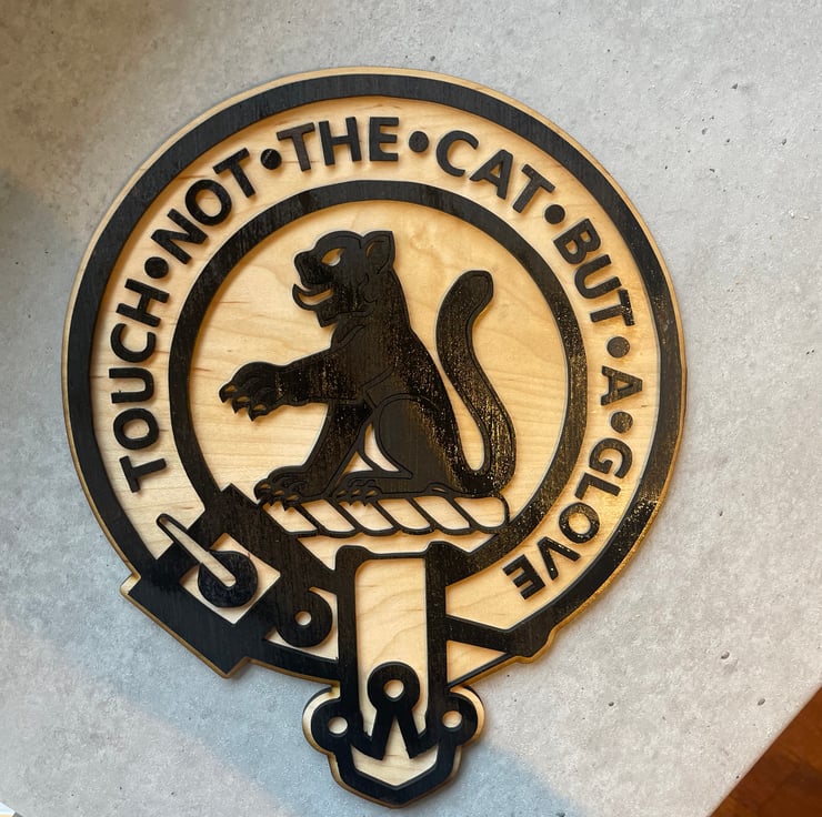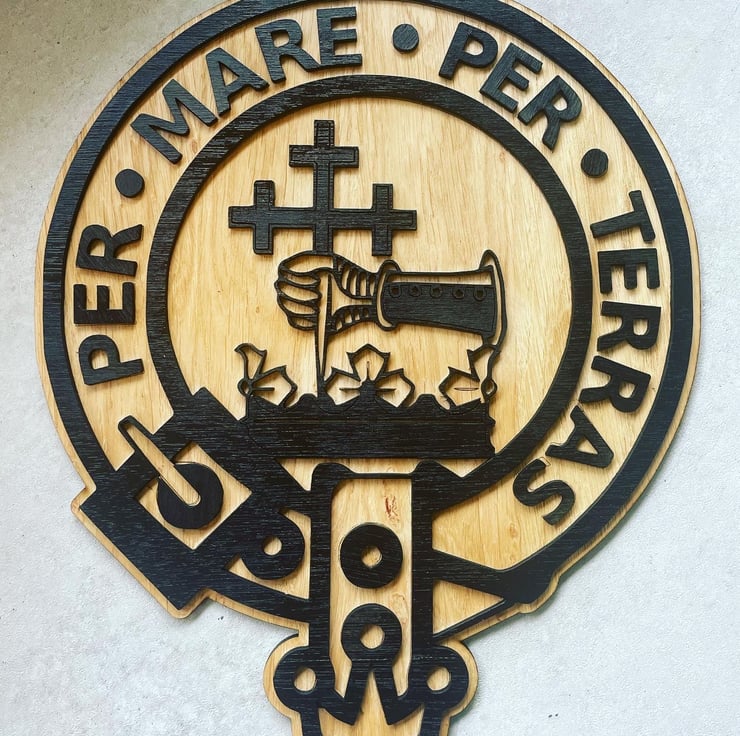 Let me know your family crest and I can make it from two layers of wood. I can also change words to put in different names. Completely customisable.