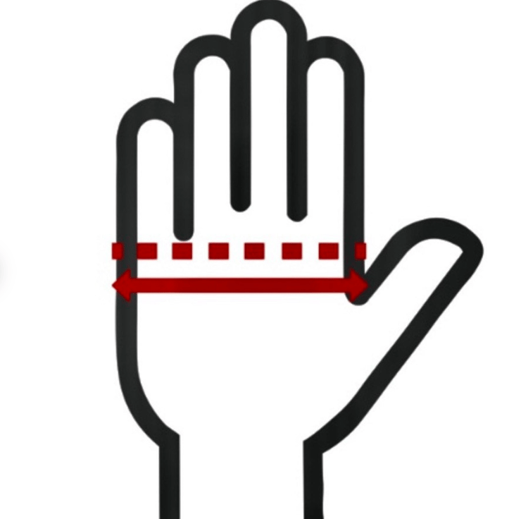 Check your palm size by measuring from crook of thumb across to widest part of flat hand (see the last photo picture)