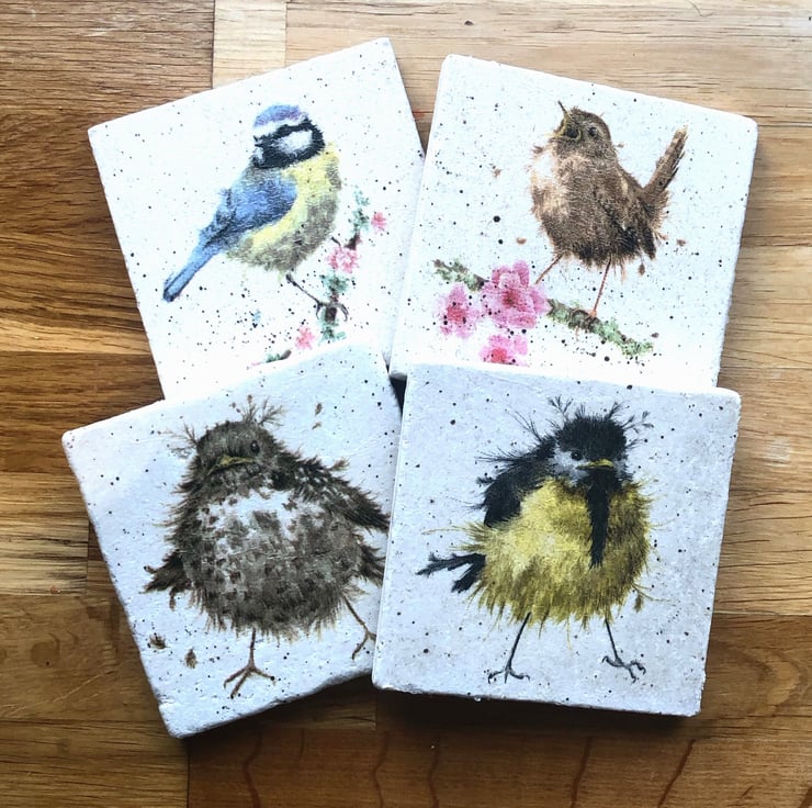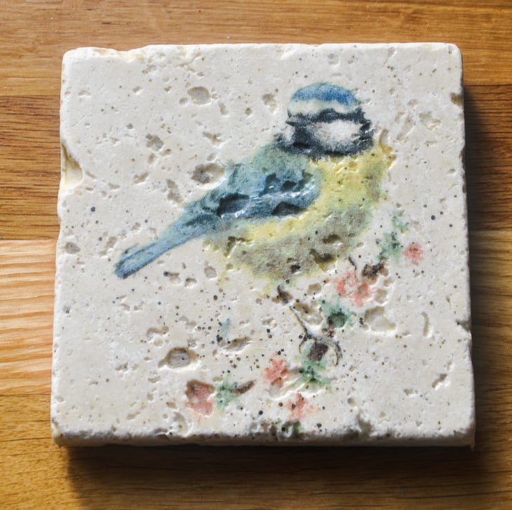 Each Coaster is hand-made from natural stone and decoupaged napkin. The coaster is then sealed with a Matt varnish, so it can be used for hot cups and backed with a cork base to protect the furniture. The coaster is limestone and is more solid than slate coasters that are for sale, not lifting when you raise your cup or glass.