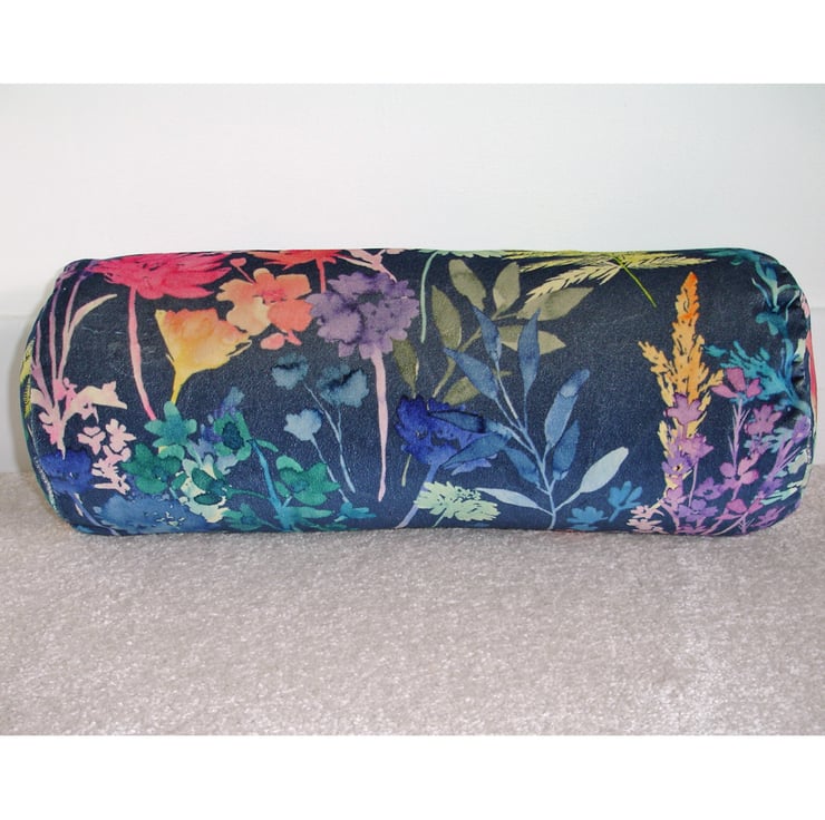 Luxurious Velvet Fabric - this Wee Peggy pattern by Scottish designers 'Bluebell Gray" features intricate watercolour detailing on a sumptuous navy base. Delphiniums, carnations, and fresh chartreuse ferns can be spotted in this botanical print.