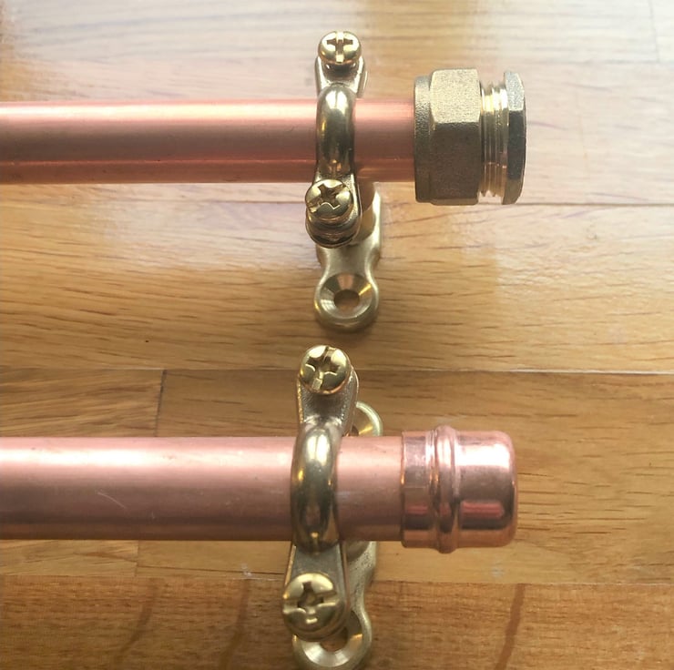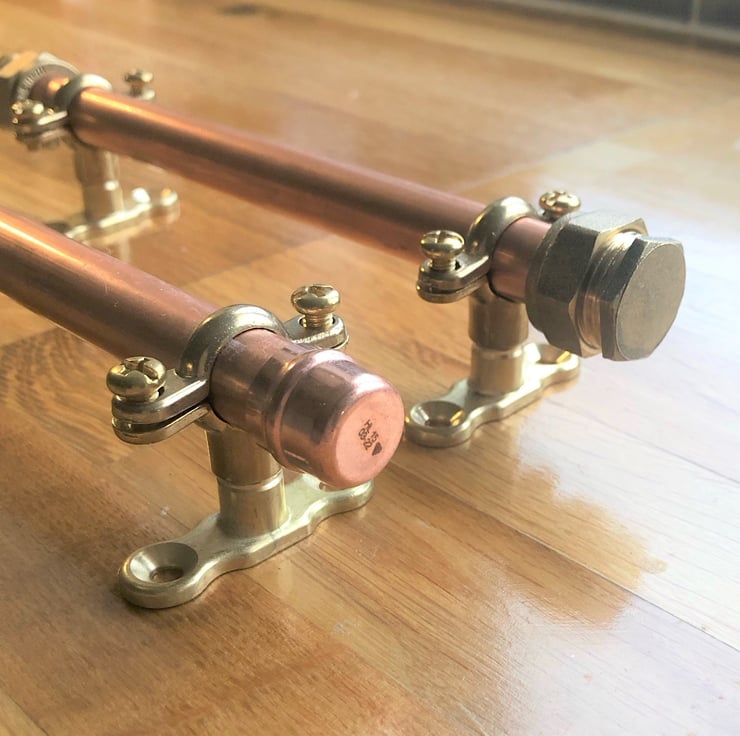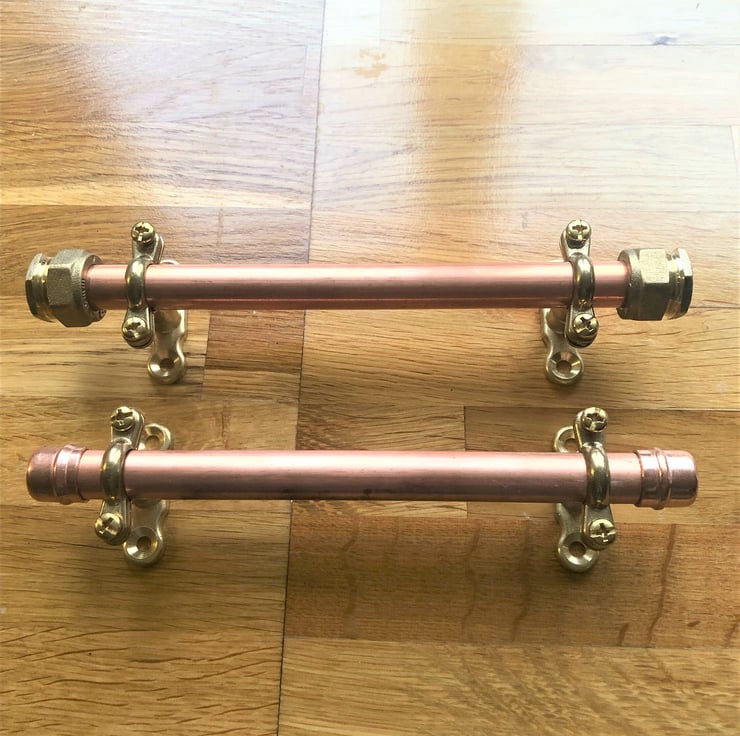 The copper pipe handles are the perfect way to add a contemporary industrial look to your cupboards drawers. They can also be used on anything else you have in mind.Each handle has been crafted from strong 15 mm copper pipe & copper fittings. They are easily installed and come complete with brass fittings.