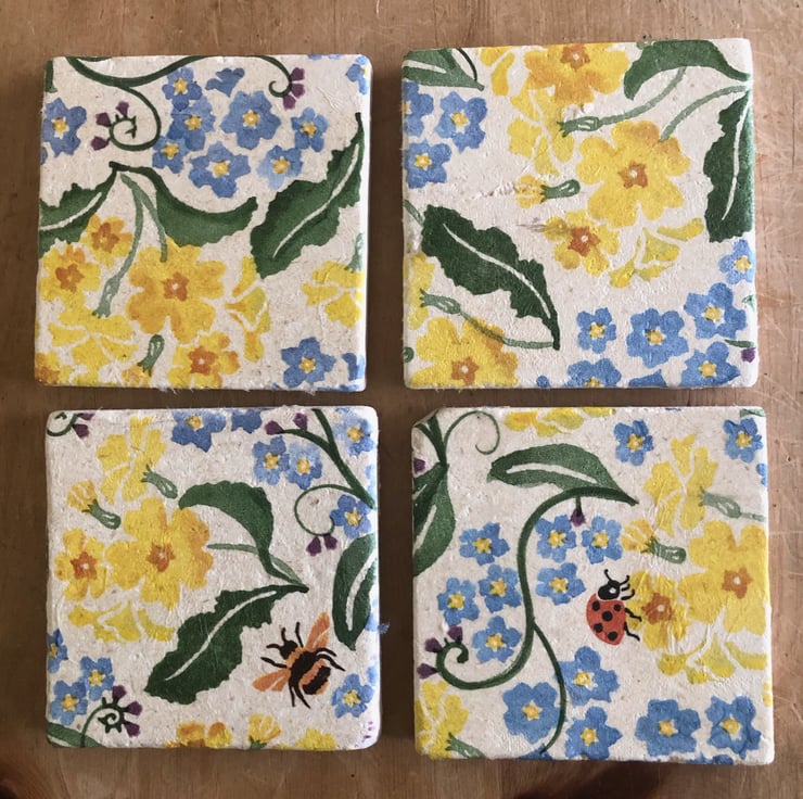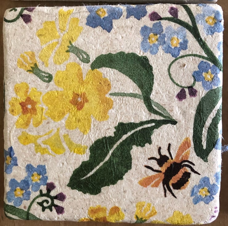 Each Coaster is hand-made from natural stone and decoupaged napkin. The coaster is then sealed with a Matt varnish, so it can be used for hot cups and backed with a cork base to protect the furniture. The coaster is limestone and is more solid than slate coasters that are for sale, not lifting when you raise your cup or glass.