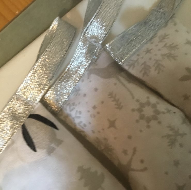 Each measures approximately 10cm excluding hanging ribbon.