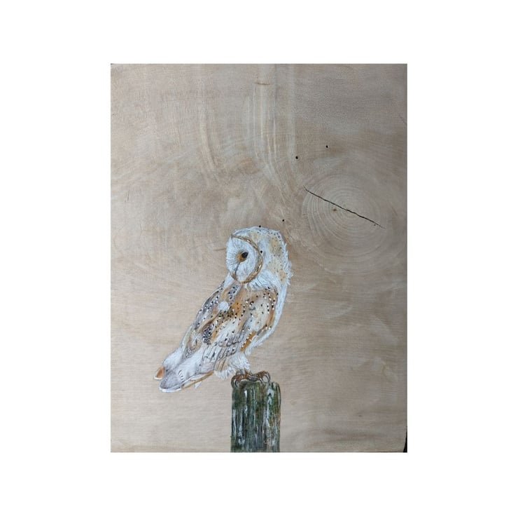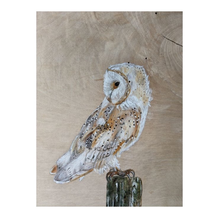 Prior to starting work, the wood has been treated for potential woodworm and planed to create a smooth surface to work. On completion it's been varnished using a light, spray varnish to offer the artwork protection.