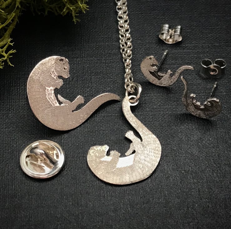Otter Lapel Pins and Stud Earrings are also available.