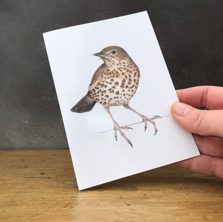 This card features a gorgeous Song Thrush, the artwork is from my original pencil drawing.