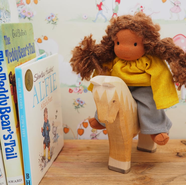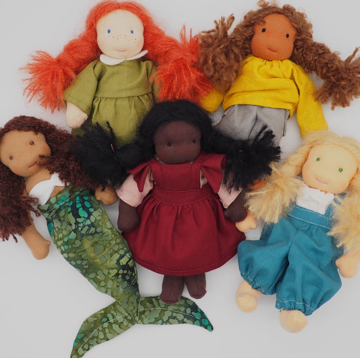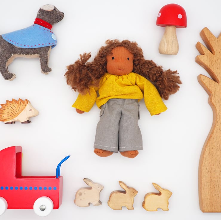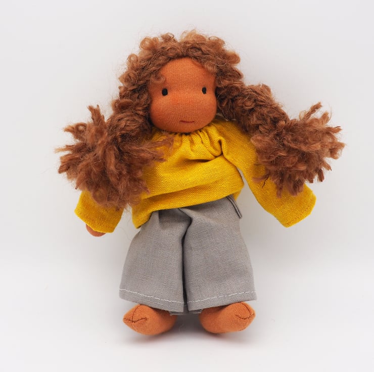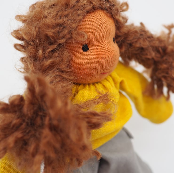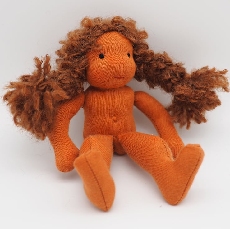 Part of a family of six dolls made to reflect children's characters. Rosie is a small Waldorf inspired doll. Rosie is very kind and gentle, she loves animals and spends as much time as she can outside.