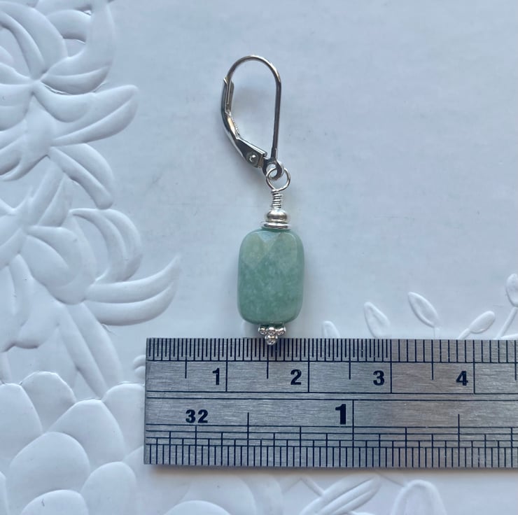 The Jadeite beads measure approximately 0.8cm x 1.1cm and the total length of each earring is approximately 3.5cm.