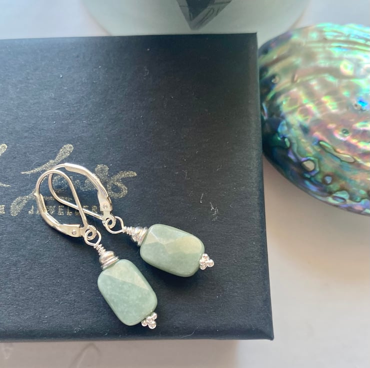 I have used Grade A natural Burmese Jadeite and 925 sterling silver findings to create these lovely earrings. They are finished with sterling silver lever back ear wires for added security.