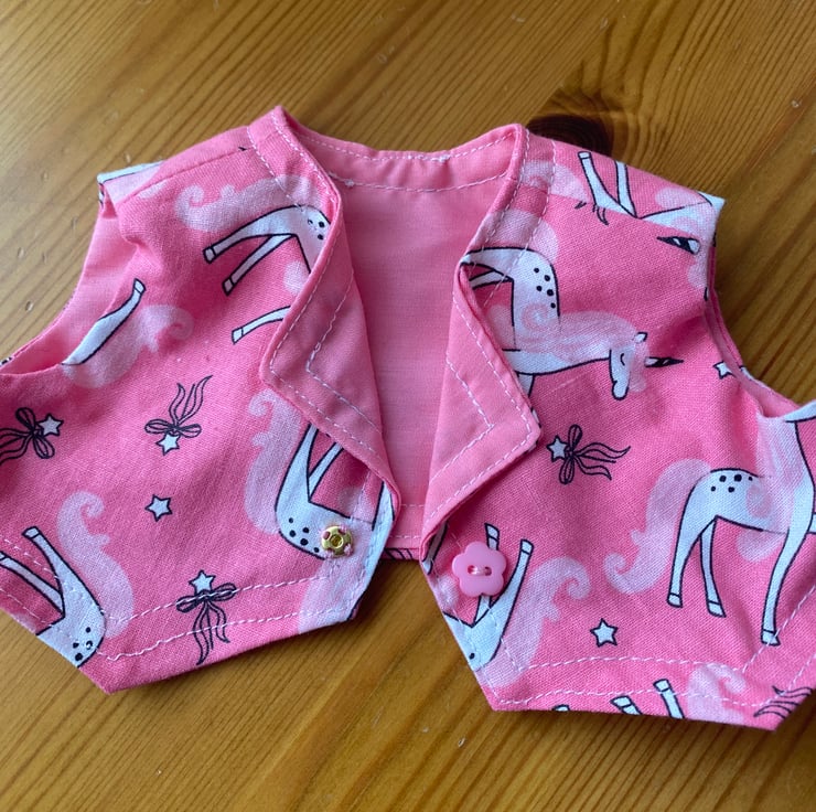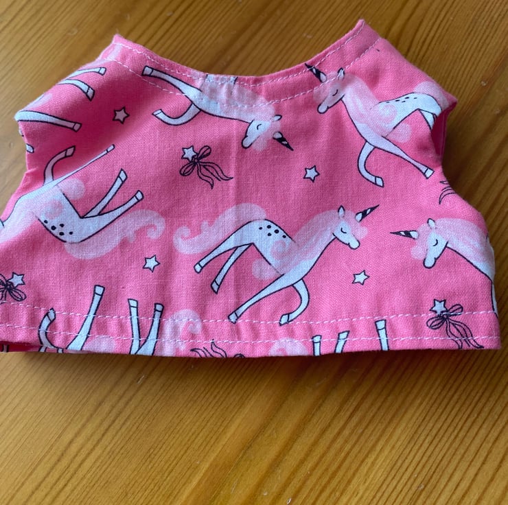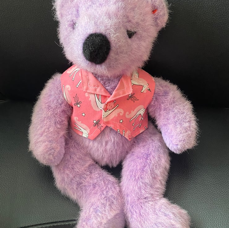 Medium size teddy bear waistcoat. Pink unicorn print with plain pink lining.