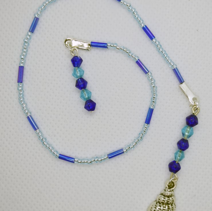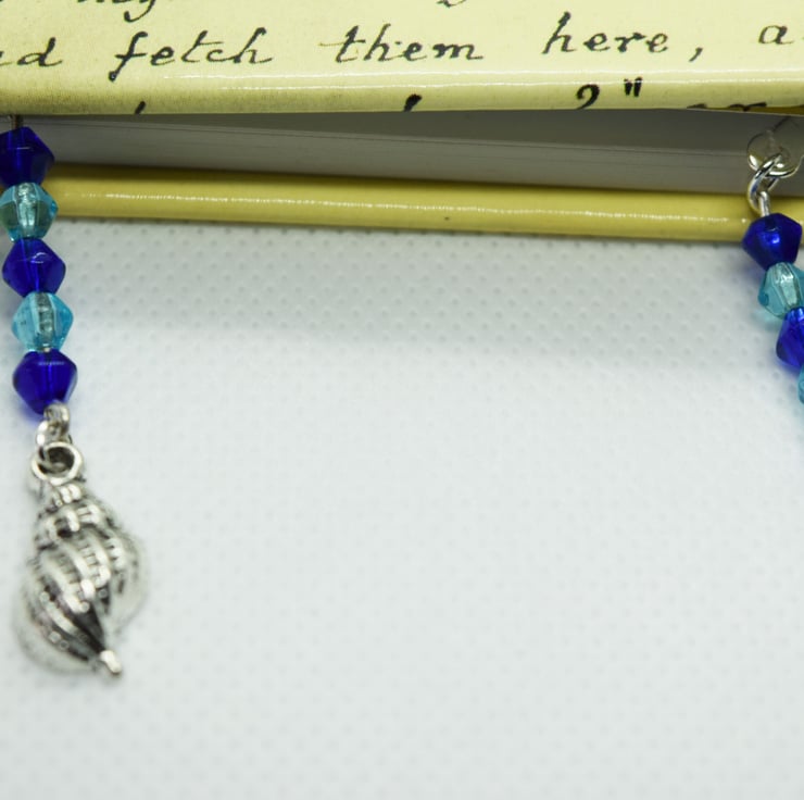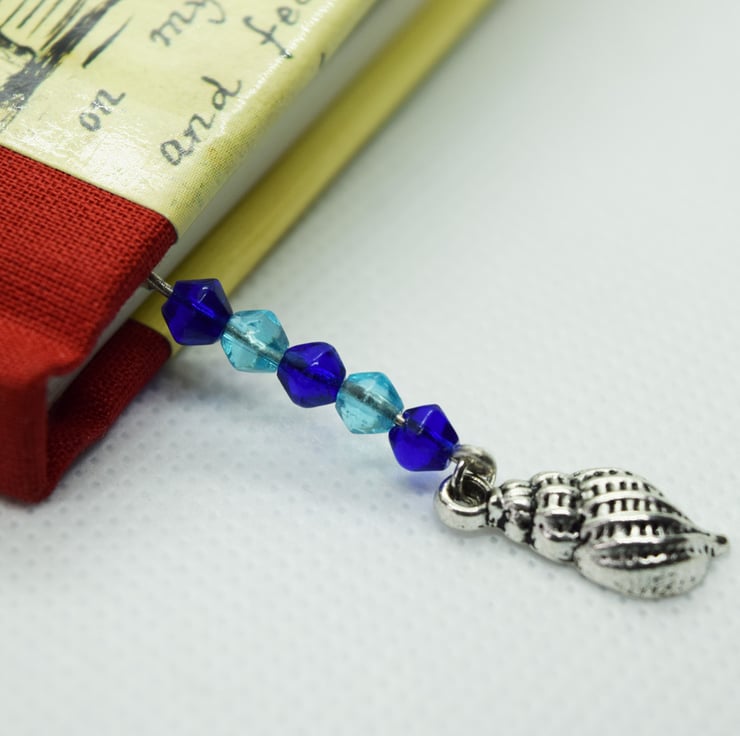 A beautiful and unique beaded bookmark with a Tibetan silver seashell charm.
