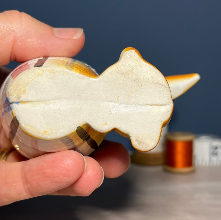 The egg cup is in very good condition - just a little paint missing on the tail and a little wear around the edges of the ears.