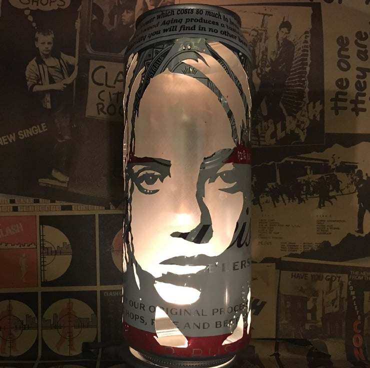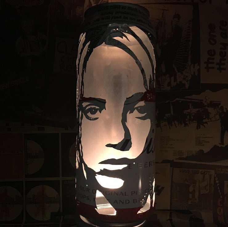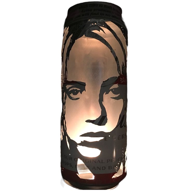 Welcome to Cult Cans on Folksy, home of the Beer Can Lantern. Each piece is a recycled beer can, hand-carved by the artist with a craft knife to create an amazing visual effect. The simple addition of a tealight candle turns each can into a unique portrait lantern featuring a striking silhouette image.