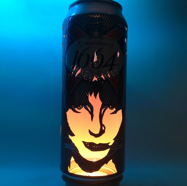 Welcome to Cult Cans on Folksy, home of the Beer Can Lantern. Each piece is a recycled beer can, hand-carved by the artist with a craft knife to create an amazing visual effect. The simple addition of a tealight candle turns each can into a unique portrait lantern featuring a striking silhouette image.
