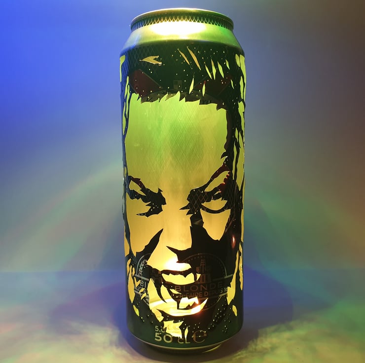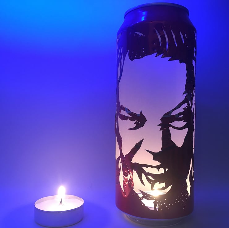 Welcome to Cult Cans on Folksy, home of the Beer Can Lantern. Each piece is a recycled beer can, hand-carved by the artist with a craft knife to create an amazing visual effect. The simple addition of a tealight candle turns each can into a unique portrait lantern featuring a striking silhouette image.