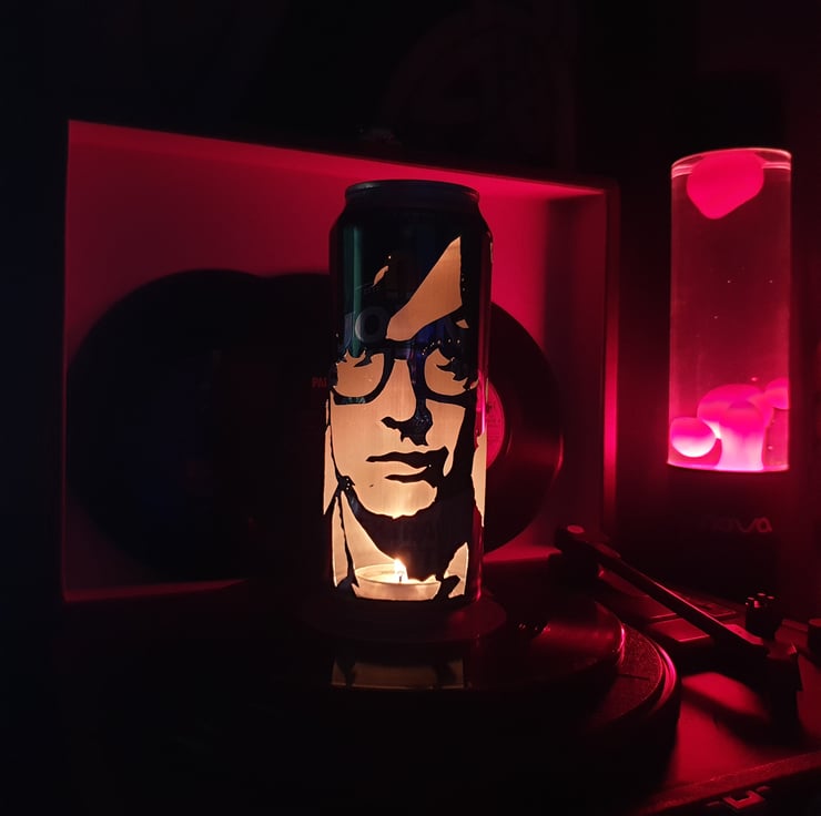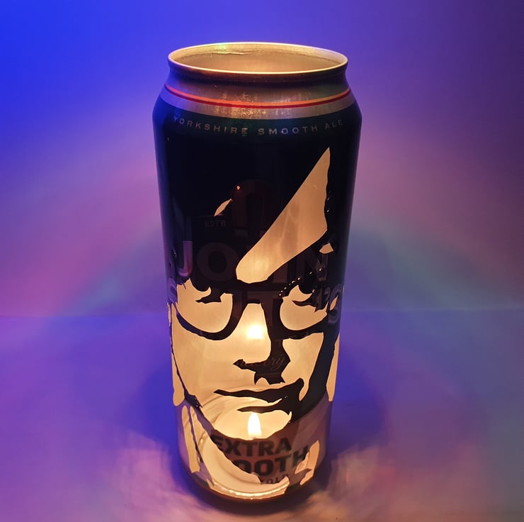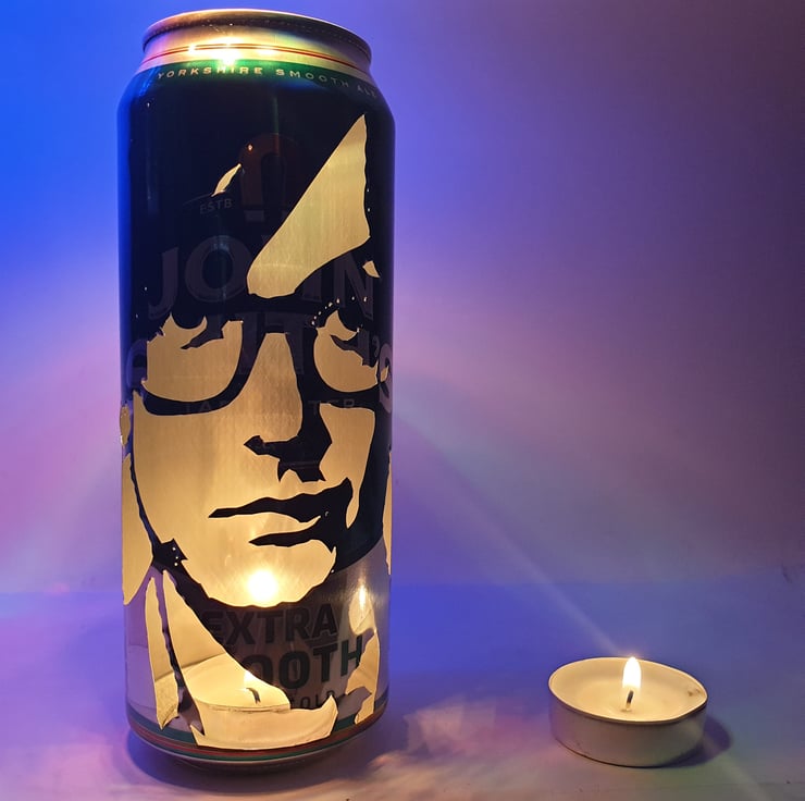 Welcome to Cult Cans on Folksy, home of the Beer Can Lantern. Each piece is a recycled beer can, hand-carved by the artist with a craft knife to create an amazing visual effect. The simple addition of a tealight candle turns each can into a unique portrait lantern featuring a striking silhouette image.