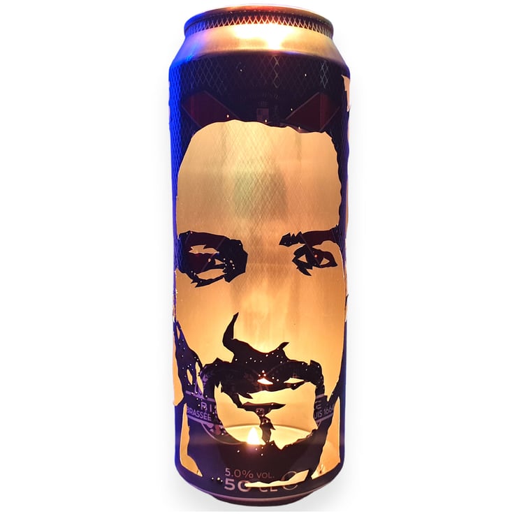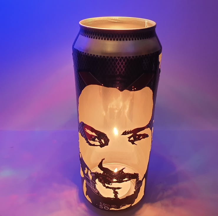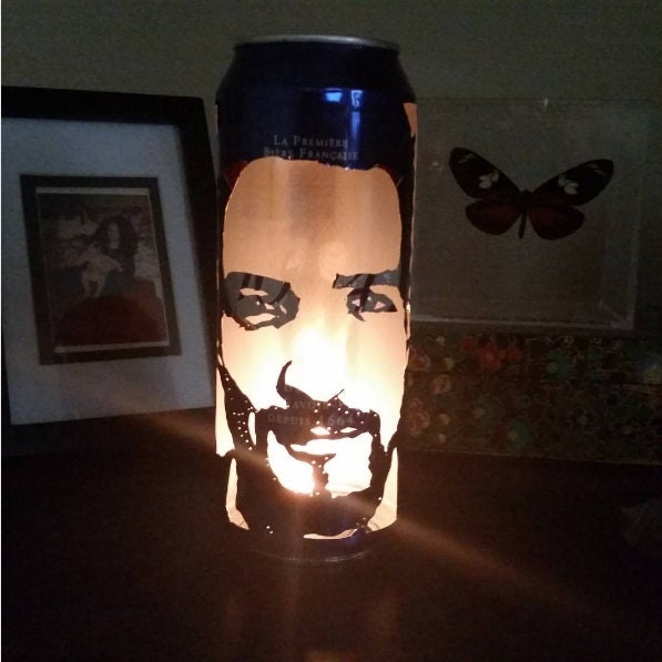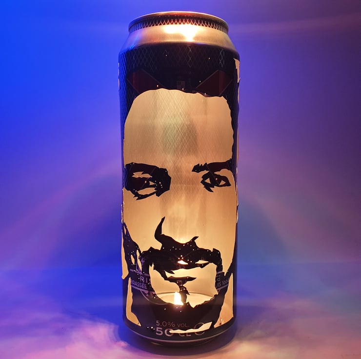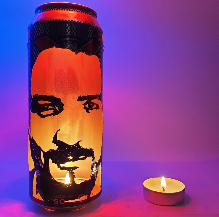 Welcome to Cult Cans on Folksy, home of the Beer Can Lantern. Each piece is a recycled beer can, hand-carved by the artist with a craft knife to create an amazing visual effect. The simple addition of a tealight candle turns each can into a unique portrait lantern featuring a striking silhouette image.
