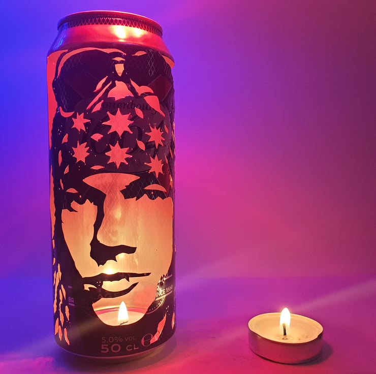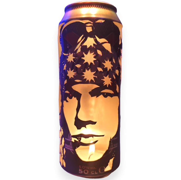Welcome to Cult Cans on Folksy, home of the Beer Can Lantern. Each piece is a recycled beer can, hand-carved by the artist with a craft knife to create an amazing visual effect. The simple addition of a tealight candle turns each can into a unique portrait lantern featuring a striking silhouette image.