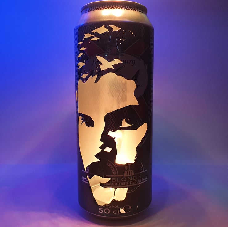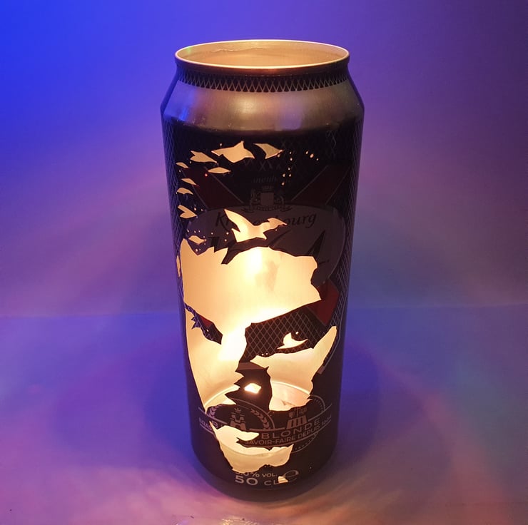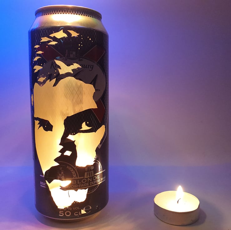 Welcome to Cult Cans on Folksy, home of the Beer Can Lantern. Each piece is a recycled beer can, hand-carved by the artist with a craft knife to create an amazing visual effect. The simple addition of a tealight candle turns each can into a unique portrait lantern featuring a striking silhouette image.