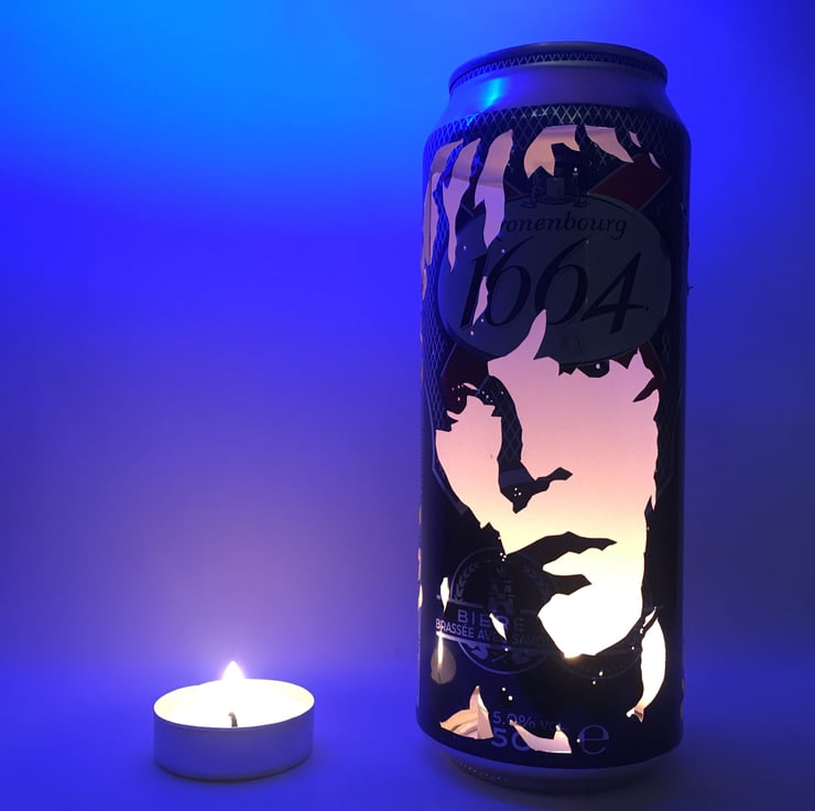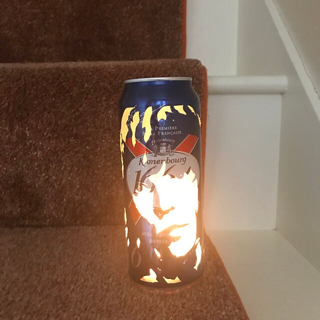 Welcome to Cult Cans on Folksy, home of the Beer Can Lantern. Each piece is a recycled beer can, hand-carved by the artist with a craft knife to create an amazing visual effect. The simple addition of a tealight candle turns each can into a unique portrait lantern featuring a striking silhouette image.
