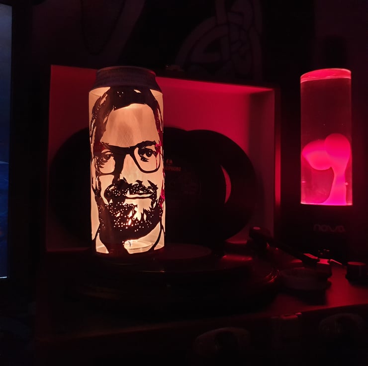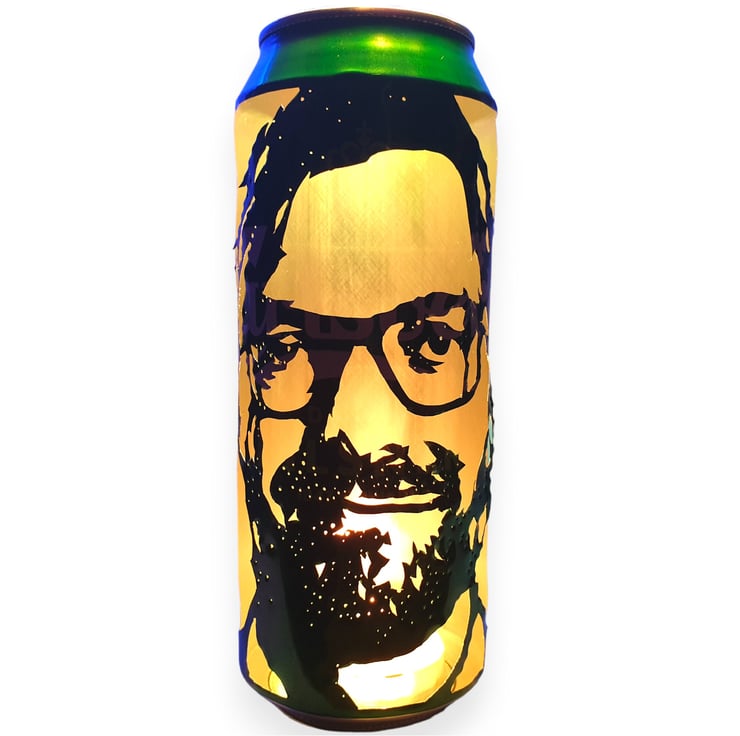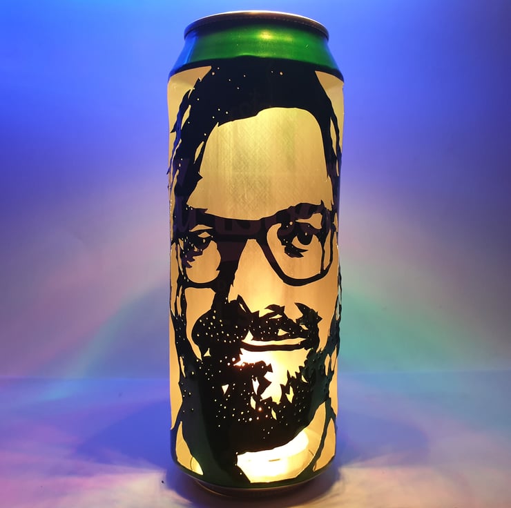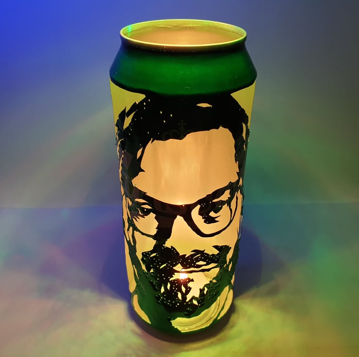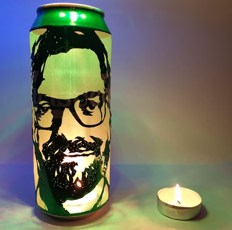 Welcome to Cult Cans on Folksy, home of the Beer Can Lantern. Each piece is a recycled beer can, hand-carved by the artist with a craft knife to create an amazing visual effect. The simple addition of a tealight candle turns each can into a unique portrait lantern featuring a striking silhouette image. We specialise in musical icons, but also feature dozens of portrait designs from the worlds of film, sport, television and popular culture.