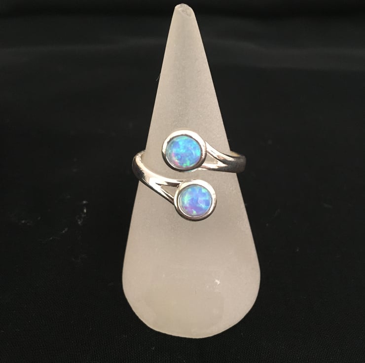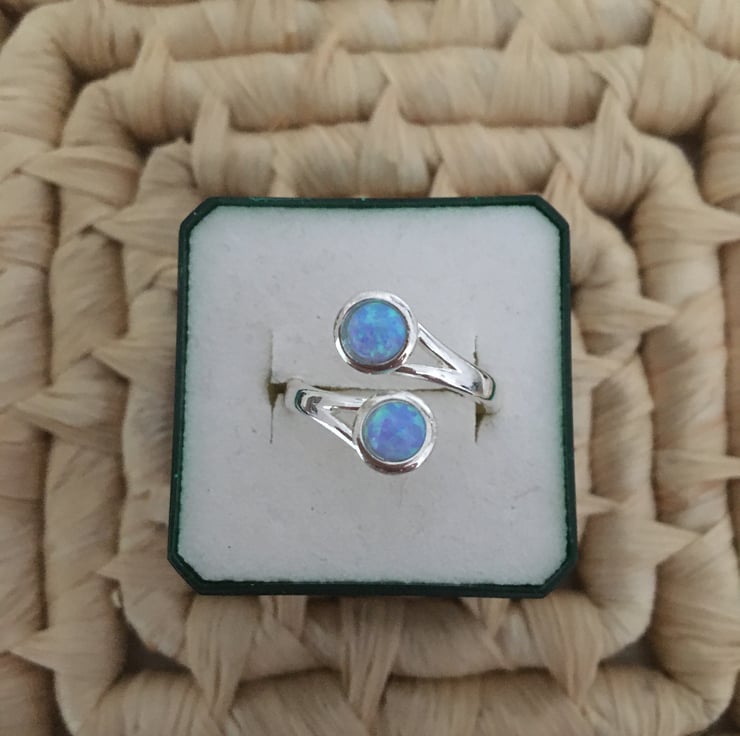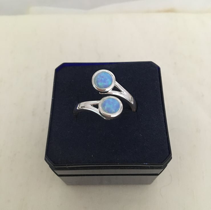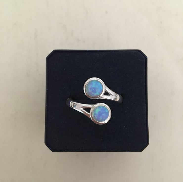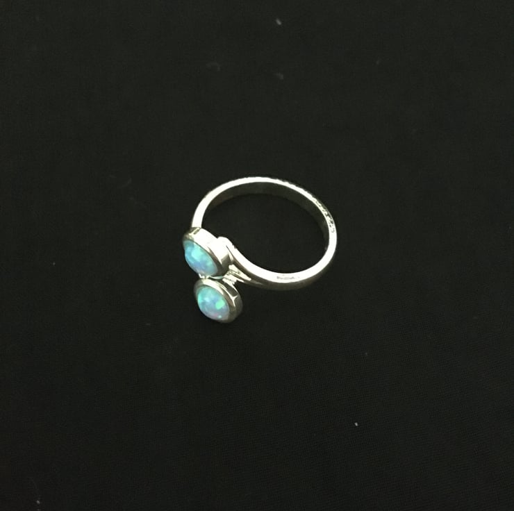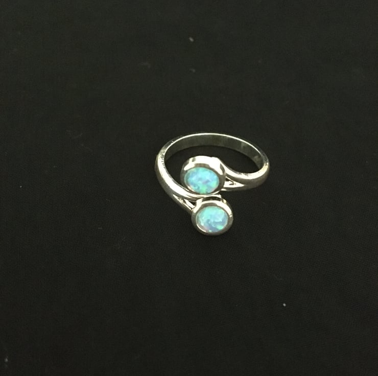 A lovely ring with 2 beautiful sky blue faux opals which makes it really stand out.