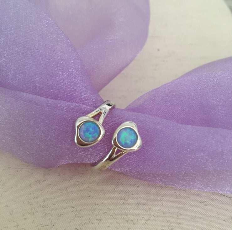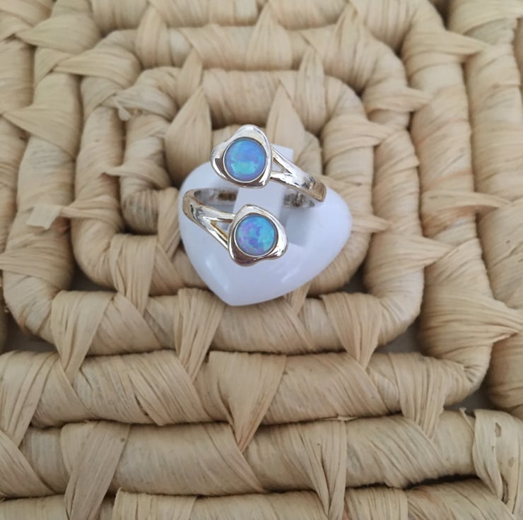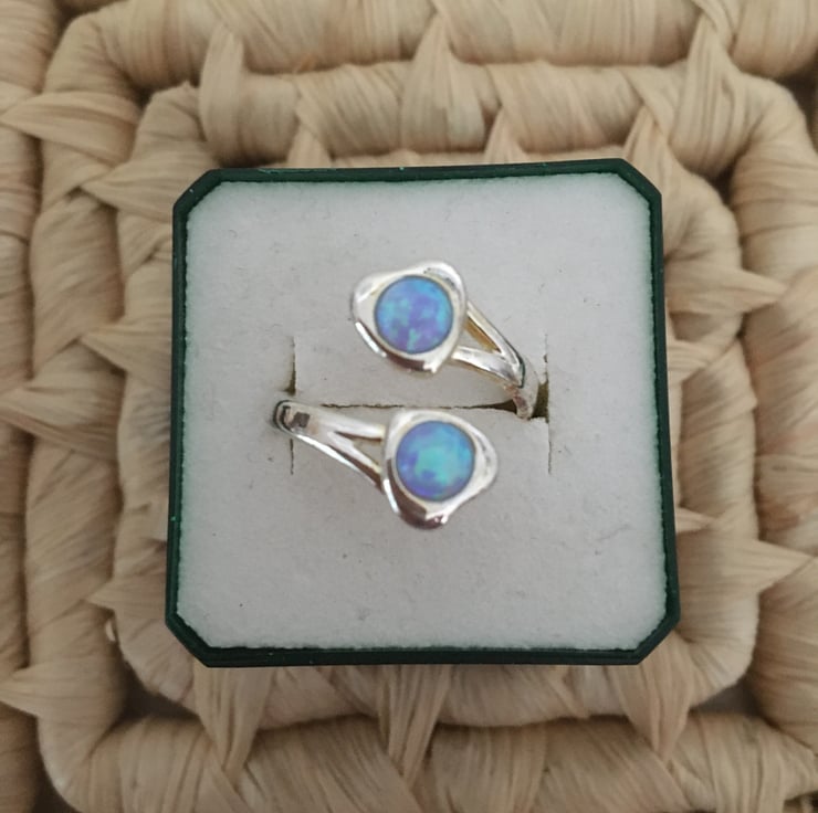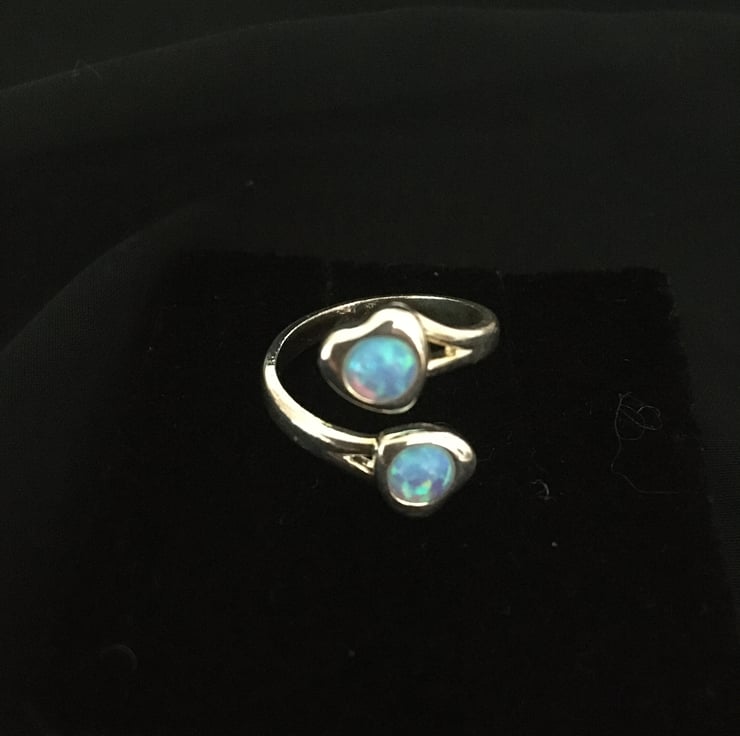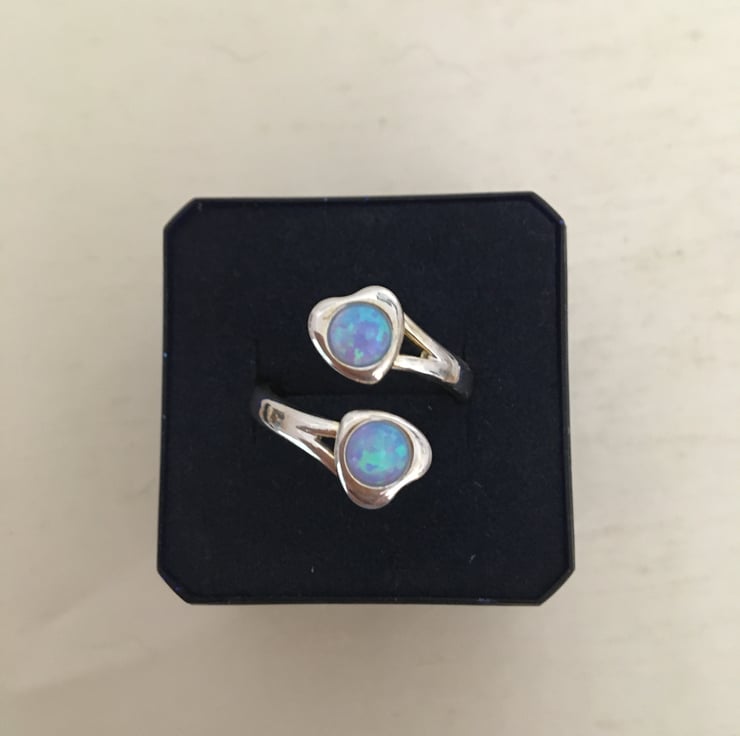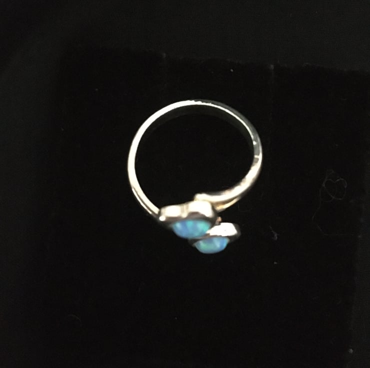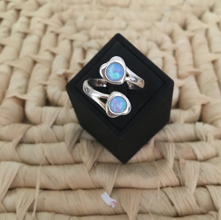 A lovely ring with 2 beautiful sky blue faux opals which makes it really stand out.