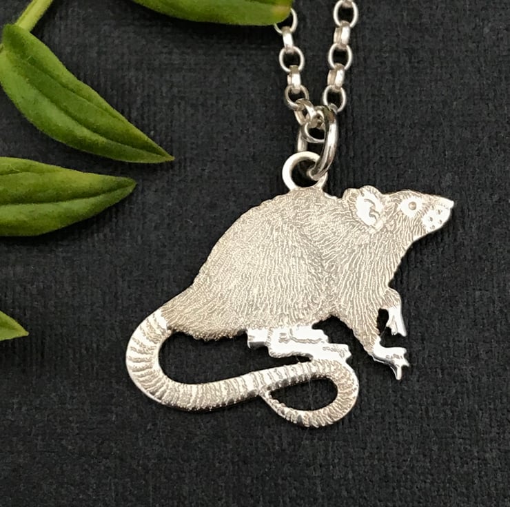 Handmade Sterling Silver Rat Pendant.