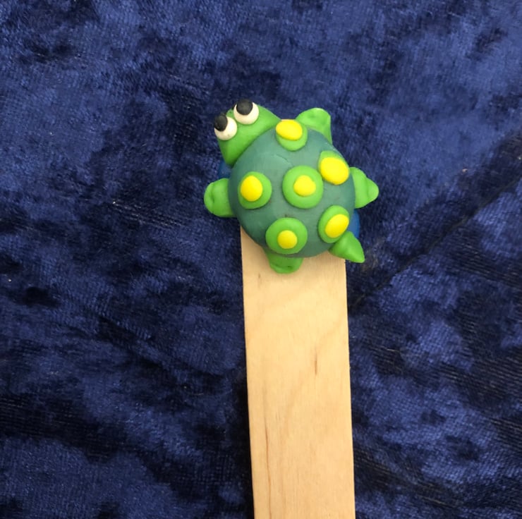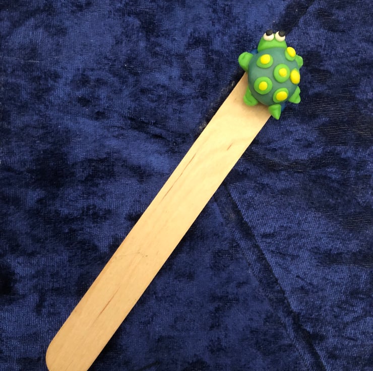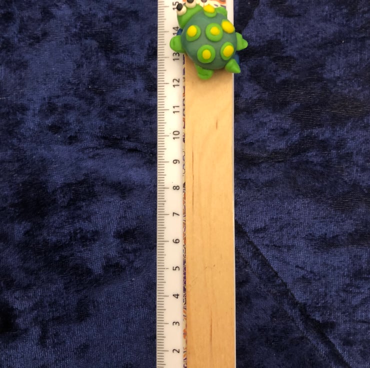This gorgeous little polymer clay shelled tortoise bookmark is the perfect critter to mark your place on your latest read. He measures approximately 3cm x 3cm and is mounted on a 15cm wooden bookmark. The perfect reptile to help you keep your place on any literary adventure...