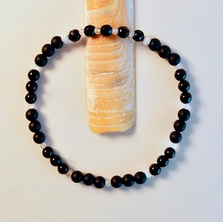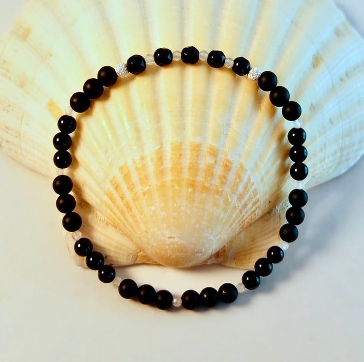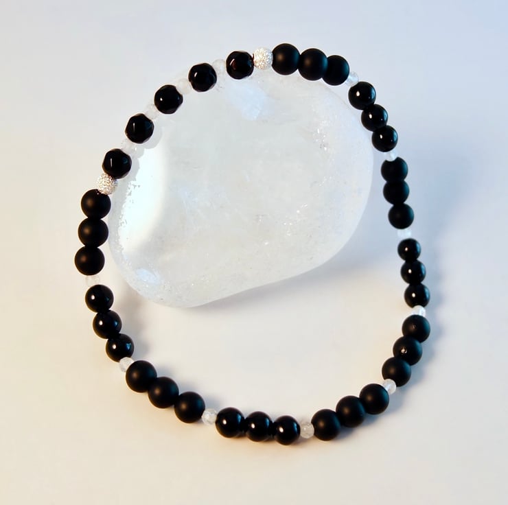 Dainty monochrome bracelet made from black Onyx and white Topaz.