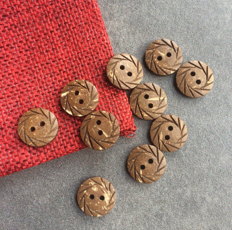 Set of 10 small medium wooden buttons 10 mm across with 2 holes. They do have lighter wood belmishes on them.