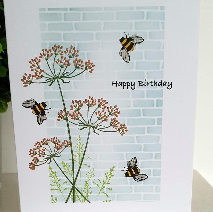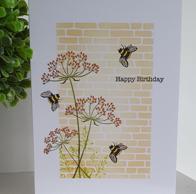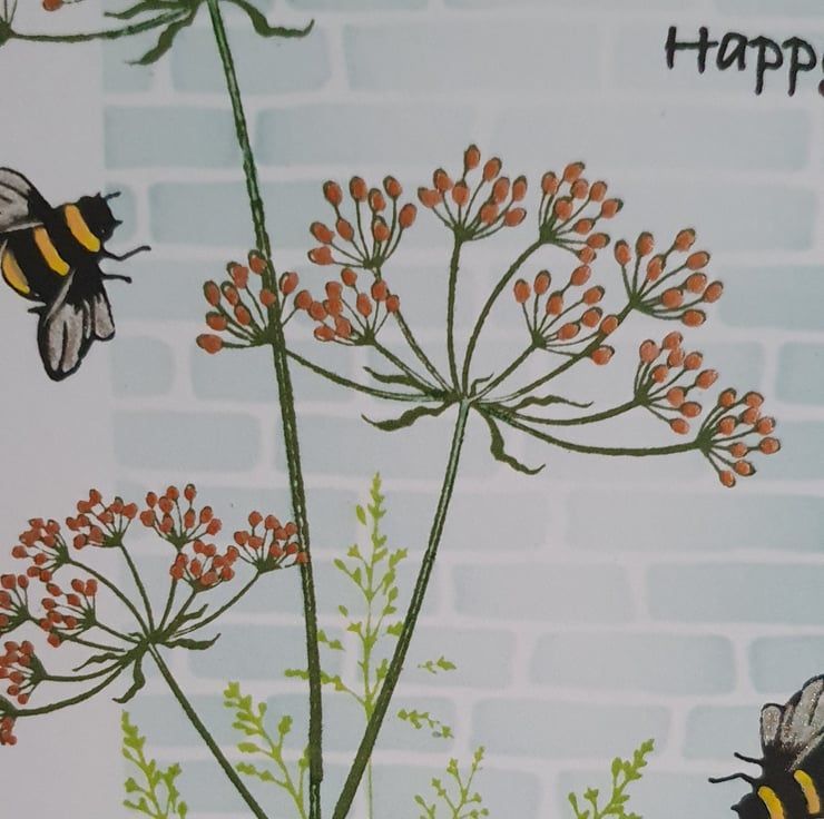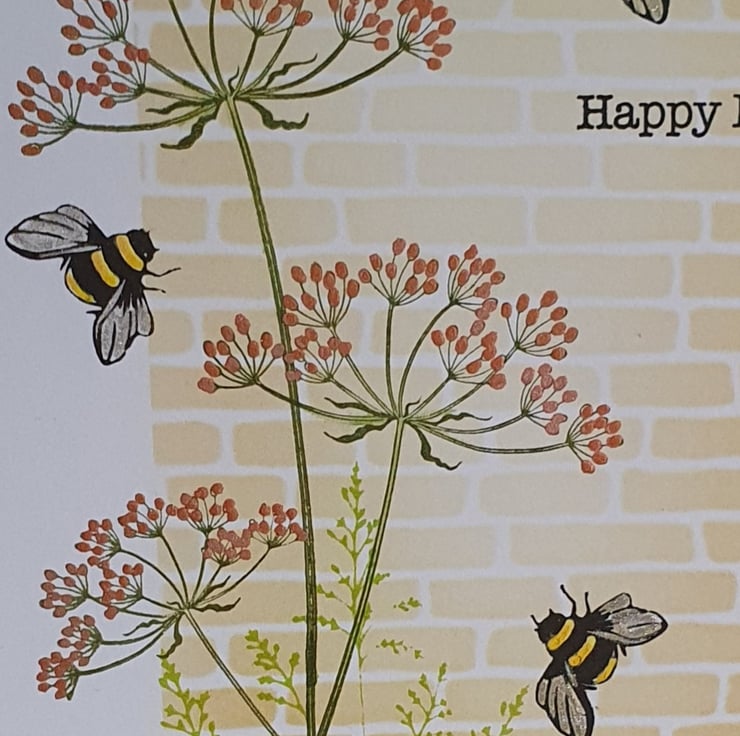 A summery vibe to this 7x5 inches card featuring summer flowers and little bees.The design has been worked directly on to the 300gsm, quality card base..