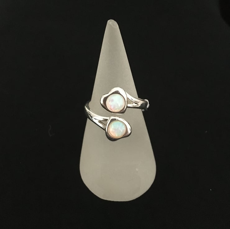Delightful adjustable Silver tone ring with faux opals
