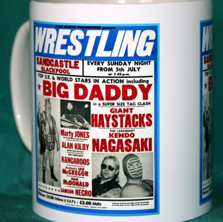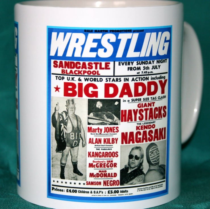 Wrestling mug Big Daddy Kendo Nagasaki vintage programme design mug