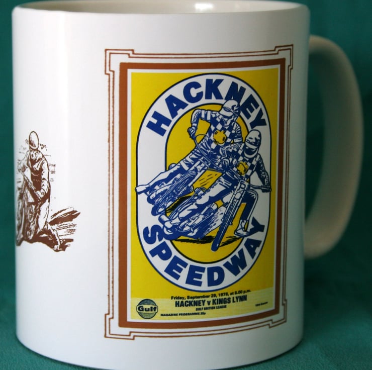 Speedway mug Hackney v Kings Lynn 1978 vintage programme design mug