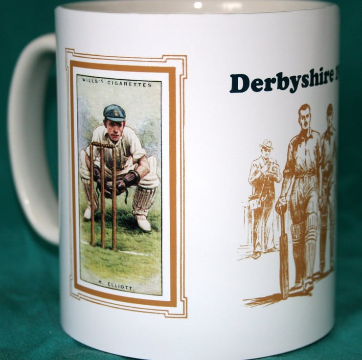 Cricket mug Derbyshire 1929 H. Elliott cricket counties vintage design mug