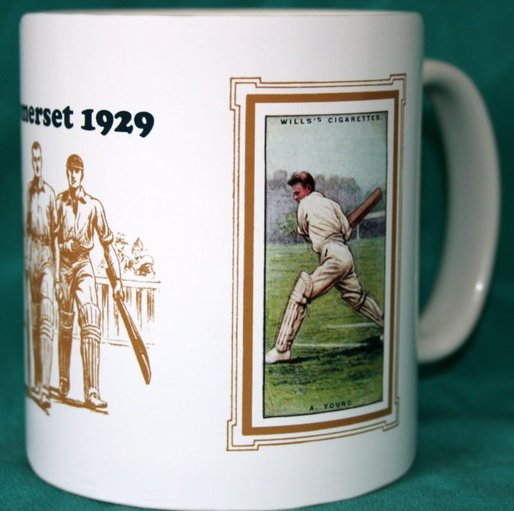 Cricket mug Somerset 1929 cricket counties M D Lyon & A Young vintage design mug