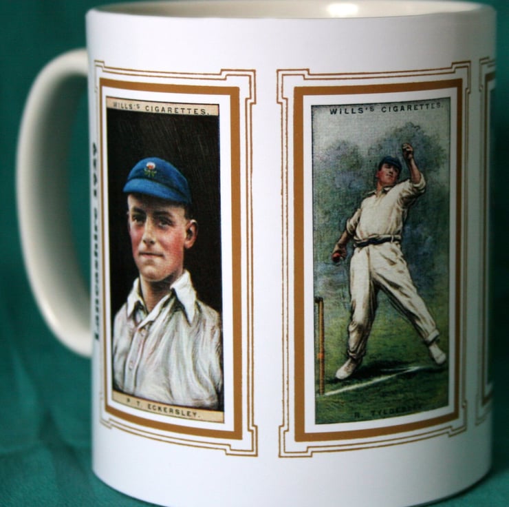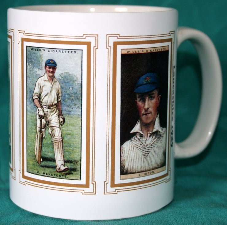 Cricket mug Lancashire 1929 cricket counties P T Eckersley R Tyldesley H Makepeace & J Iddon vintage design mug