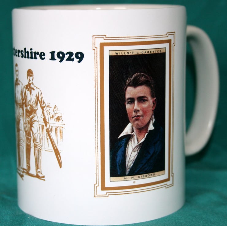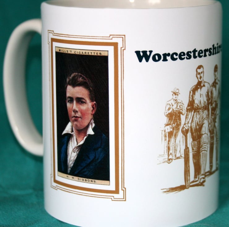 Cricket mug Worcestershire 1929 cricket counties H H Gibbons vintage design mug