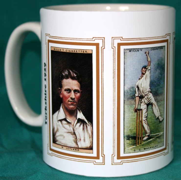 Cricket mug Yorkshire 1929 cricket counties M Leyland G G Macaulay E Oldroyd E Robinson vintage design mug