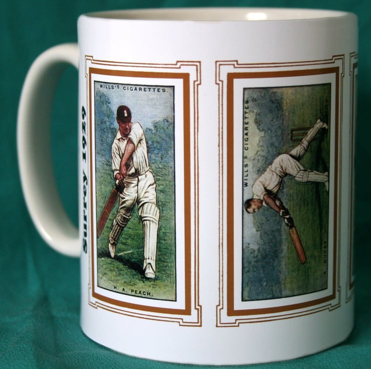 Cricket mug Surrey 1929 cricket counties H A Peach A Ducat T F Shepherd & E R T Holmes vintage design mug