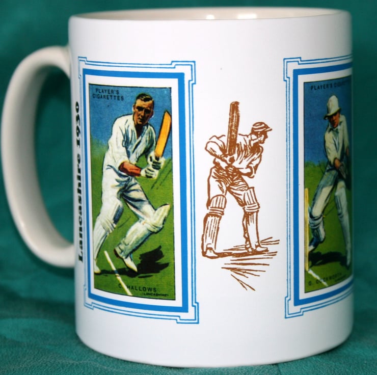 Cricket mug Lancashire Lancs 1930 vintage design mug