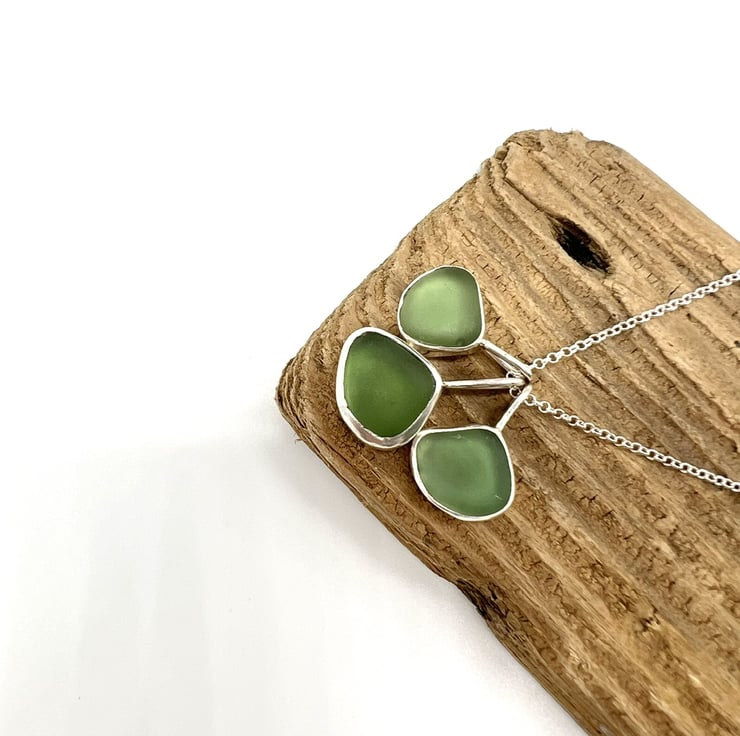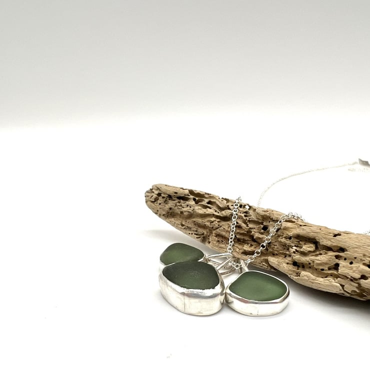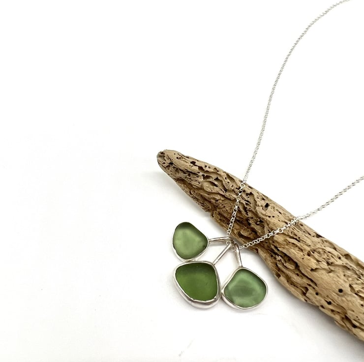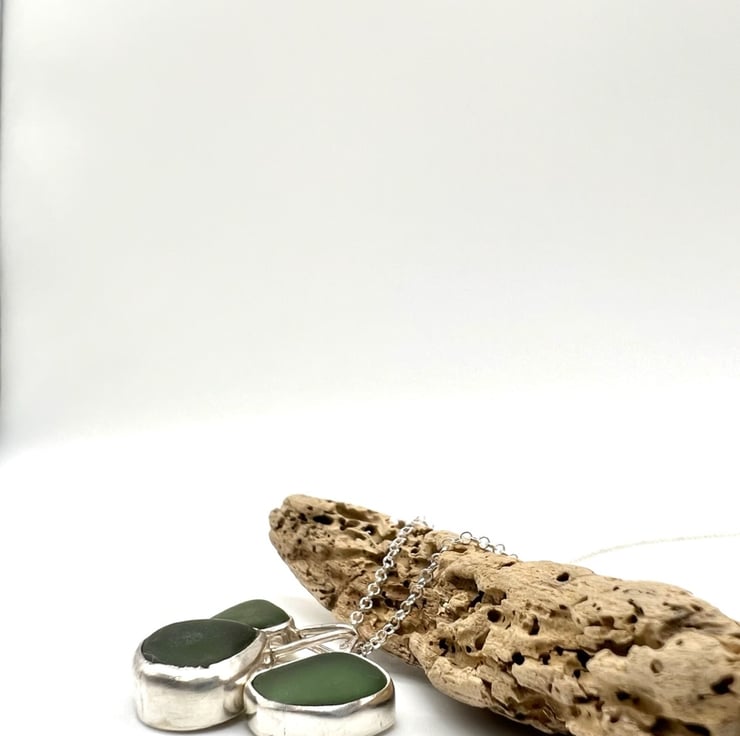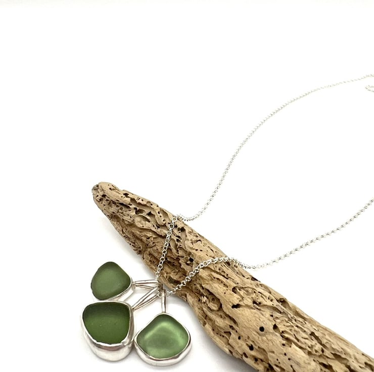 These beautiful pieces of green sea glass were found on the beaches of the Isle of Wight. I had picked them myself for their shape and colour.