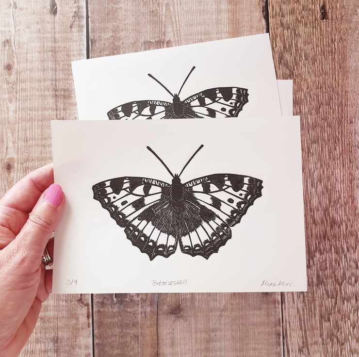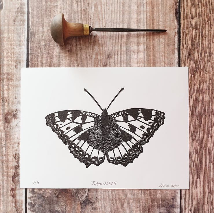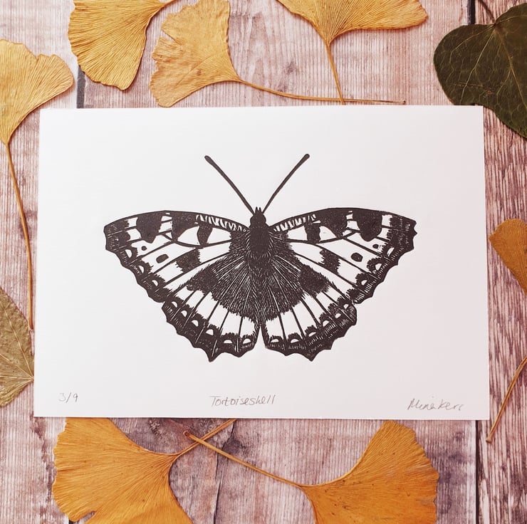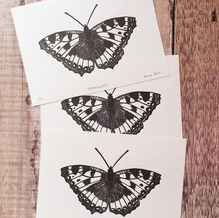 Butterflies are always an inspiration and I wanted to make a simple black and white illustration of the tortoiseshell - I'm probably working my way through making prints of as many butterflies as I can!