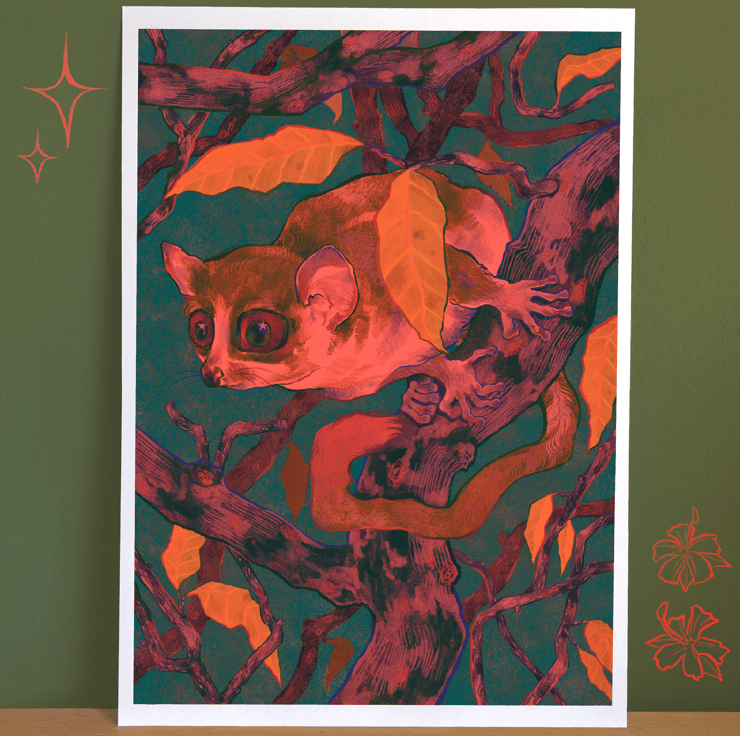 A4 print of my Illustration 'Madam Berthe's Mouse Lemur'.