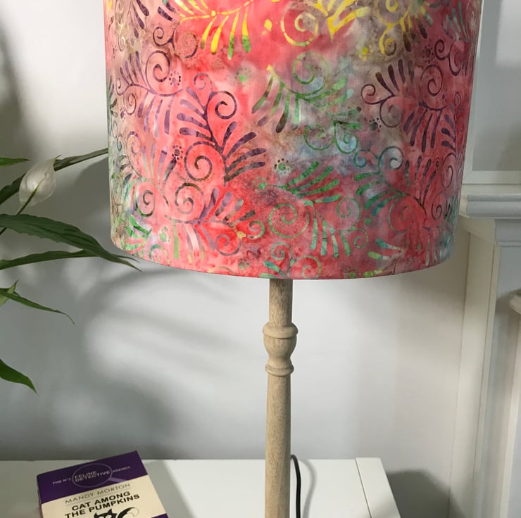 I was asked to make a small modern lampshade with this beautiful batik to update an old, but much loved, lamp. It looked so good I had to make a larger version!