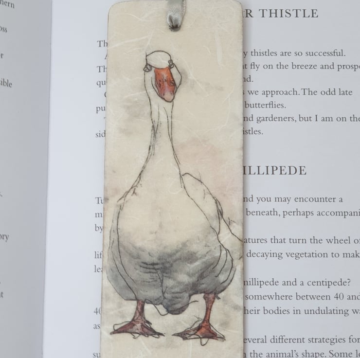 Unisex wooden bookmark which has been lovingly decoupaged with a duck on the front and would make a great gift for a booklover. The bookmark has been sealed and finished with silver satin ribbon. A quacking way to save the page this bookmark will come supplied in cardboard packaging with a Crafty Nature label.