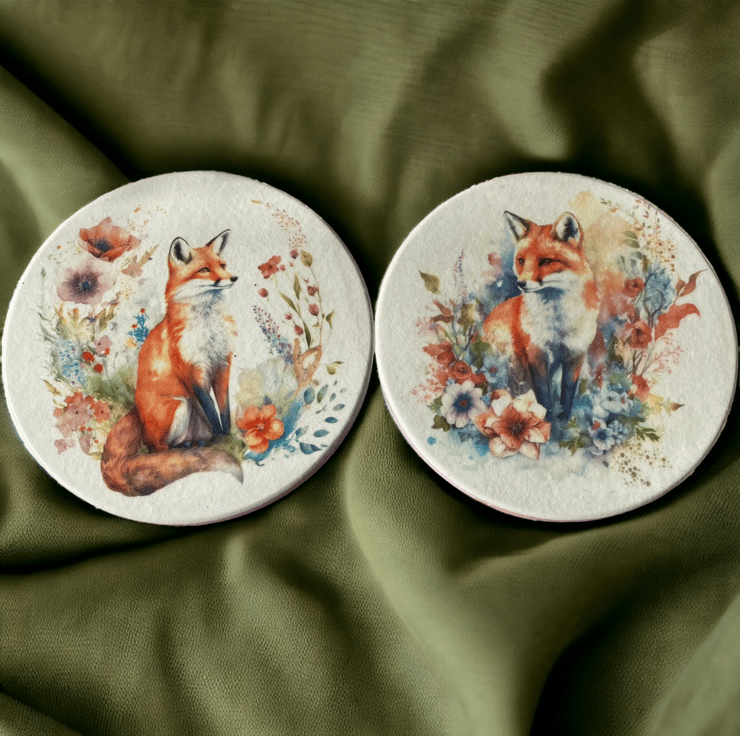 Each ceramic coaster features a beautiful fox design, carefully decoupaged onto the surface, making it a perfect addition to any wildlife or nature-themed space. These coasters are not only functional but also serve as eye-catching decorative pieces. Whether placed in the living room, bedroom, or even the office, these fox-themed coasters are sure to enhance the aesthetic appeal of any surface. They also make an ideal gift for fox lovers and nature enthusiasts. Protect your furniture in style with these adorable coasters!