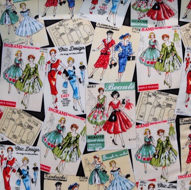 Washable cotton print fabric with cream calico enveloped reverse.